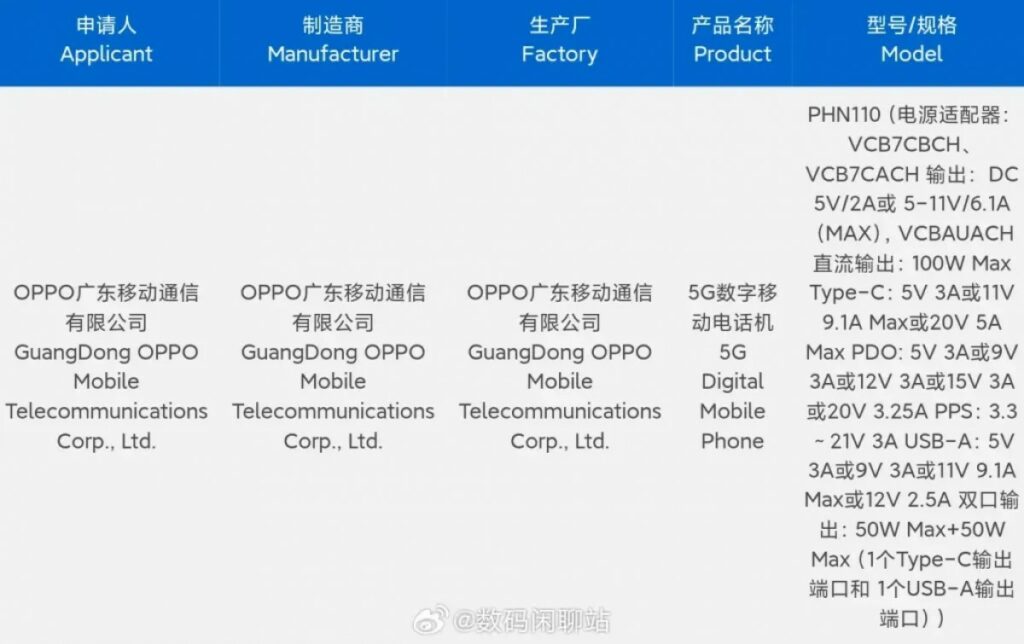 A telefont a SuperVOOC VCB7CACH töltővel szállítja majd az Oppo, amely kettős USB-A/USB-C csatlakozóval rendelkezik. A források szerint az adapter 100W-ot fog támogatni a jogosult eszközök esetében, de mindegyik port 50W-ot is kínál majd. Reméljük, hogy ez a töltő több kütyü töltését is támogatja majd, ellentétben a Huawei megoldásával, ahol az egyik csatlakoztatott USB kábel blokkolja a másik portot.