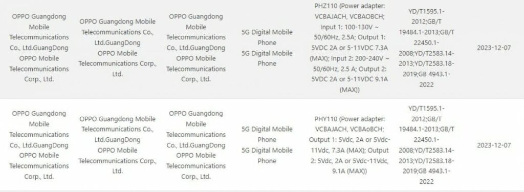 Mind a PHY110, mind a PHZ110 a VCBAJACH töltővel fog működni, amely 2023 óta része az Oppo portfóliójának. Az adapter támogatja az összes SuperVOOC tarifát, de a listázás nem mond semmit arról, hogy a Find X7 és az X7 Pro rendelkezik-e majd vezeték nélküli töltéssel; korábban csak a Pro támogatta ezt a funkciót.