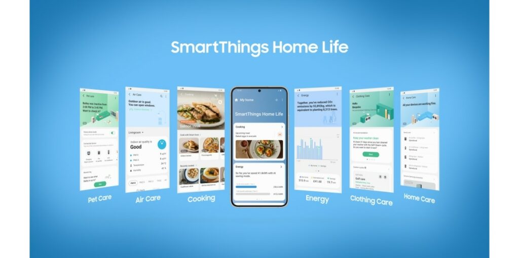 A SmartThings Home Life egy olyan szolgáltatás, amely minden eddigi SmartThings alkalmazást egyesít: főzés, energia, ruhatisztítás, állatgondozás, levegőtisztítás és otthonunk rendben tartása. Ez lehetővé teszi a felhasználók számára, hogy akár okostelefonjukról, bárhol-bármikor gondoskodjanak otthonukról és mindennapi teendőikről. A SmartThings azonban nem csak a háztartási eszközökre terjed ki, hanem a Galaxy termékcsalád eszközeire is, így többek között a legújabb generációs Galaxy Watch5 órákra.