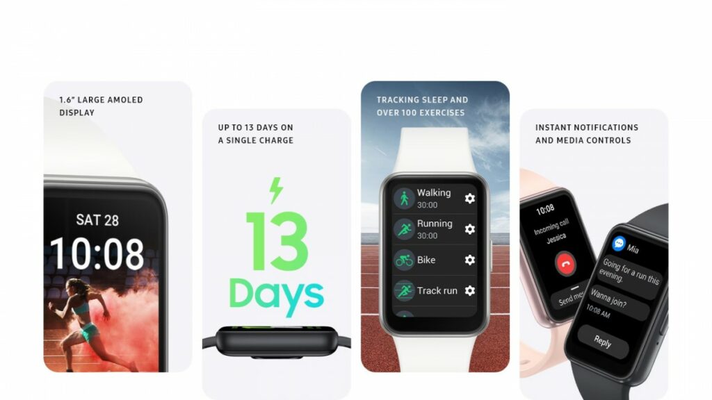 Több mint 100 mód közül választhatunk aktivitáskövetést, valamint alvás-, stressz- és pulzusszám-követést. A készülék elesésérzékelő érzékelővel is fel van szerelve, és képes figyelmeztetni a vészhelyzeti kapcsolattartókat.