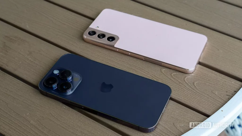 Íme egy kép a Galaxy S22 Plusról egy iPhone 14 Pro mellett. A Galaxy S24 széria dummy készülékei több közös vonást mutatnak az iPhone-nal, mint elődjével!