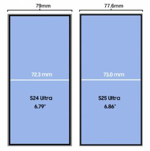 A Galaxy S24 Ultra 6,79 hüvelykes kijelzője körüli keret 3,35 mm vastag, ami azt jelenti, hogy a Galaxy S25 Ultra ezt több mint 30%-kal csökkenti, ami jelentősen javítja a vizuális élményt.