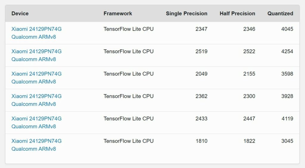 A Xiaomi 15 globális változata, „24129PN74G” modellnéven feltűnt a Geekbench adatbázisában, különösen az AI tesztszekcióban. Az eredmények nagyon eltérőek, így még korai lenne összehasonlítani a Snapdragon 8 Elite teljesítményét a Xiaomi 14-ben található 8 Gen 3 chippel.