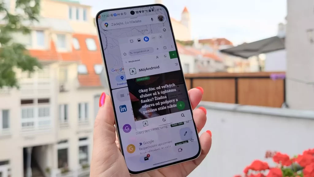 Az ébresztő után a szokásos kör: értesítések, naptár, e-mailek. A lebegő ablakokkal és az osztott képernyővel rutinszerűen dolgozom: bal oldalt Gmail, jobb oldalt a böngésző, egy chat-app buborékban „parkolva” a kijelző szélén. Az animációk feszesek, a váltások azonnaliak, nincs idegesítő késlekedés – pont úgy viselkedik, ahogy egy nap elején rohanó ember elvárja.