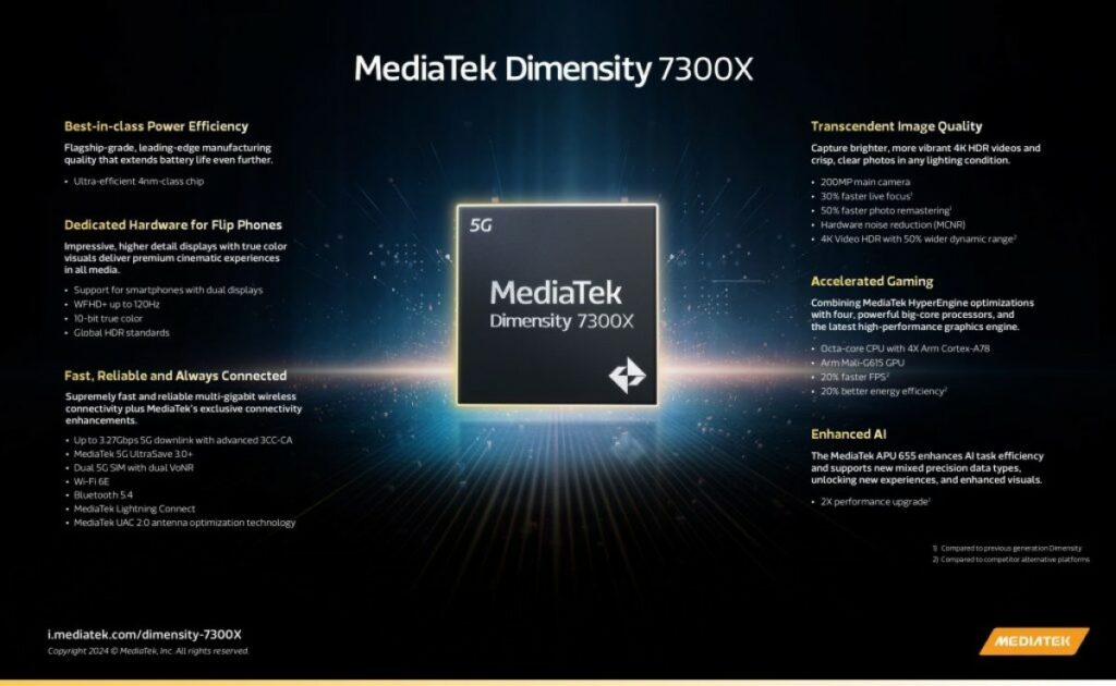 A Mediatek tegnap két új chipsetet mutatott be Dimensity 7300 és Dimensity 7300X néven. 4 nm-es eljárásra épülnek, és a Dimensity 7050 utódjaként érkeznek, és gyakorlatilag azonosak, egyetlen kulcsfontosságú különbséggel – a 7300X támogatja a kettős kijelzőt.