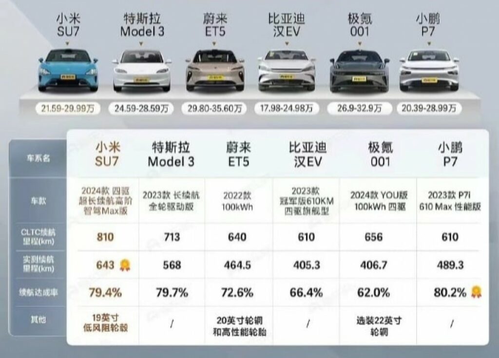 Bár a laboratóriumban mért EV hatótávolságok gyakran túlságosan optimisták, a Xiaomi SU7 a valóságban is tiszteletre méltó teljesítményt nyújtott. A Xiaomi a kínai könnyűgépjárművek tesztciklusán (CLTC) 800 km-es hatótávolságot állít. A Dongchendi által végzett közúti teszten az SU7 még mindig lenyűgöző 643 km-t ért el. Bár az XPeng P7 még közelebb volt a CLTC-értékhez, ez azt mutatja, hogy a Xiaomi újdonsága elég tartalékkal rendelkezik a hosszabb utakhoz is.