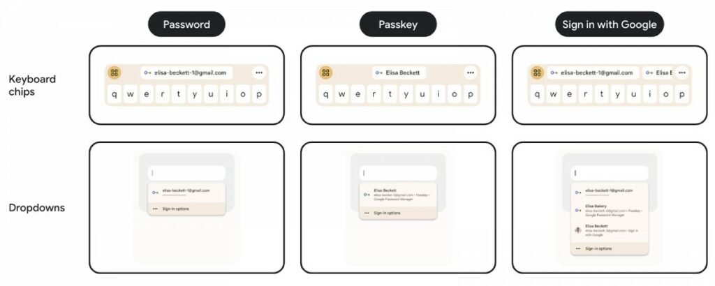 A Google új UI lehetőségeket is bevezetett arra az esetre, ha a felhasználók véletlenül elutasítják a jelszó kérést. A felhasználók jelszó javaslatokat kapnak az automatikus kitöltés UI-ban a támogatott billentyűzeteken és legördülő menükben.