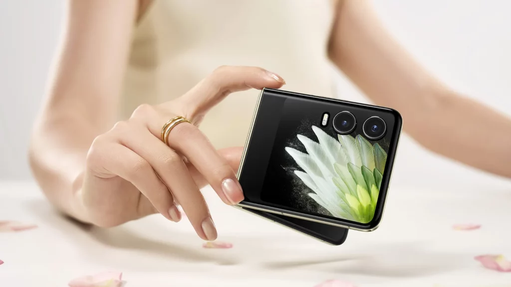 Eközben a vállalat bejelentett egy flip-stílusú összecsukhatót is. A TECNO teljesen újragondolta a tavalyi PHANTOM V Flip megjelenését. Eltávolította a nagy, kör alakú kameramodult, amely okosóra-szerű fedőképernyővel rendelkezett, és helyette egy teljes kijelzőt alkalmazott, kivágásokkal a két kamera számára, hasonlóan ahhoz, ahogy a Motorola tervezte a Razr szériát, legutóbb a Motorola Razr (2024) modellel.