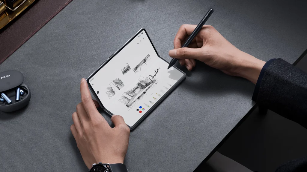 Idén már jópár összecsukható telefon jelent meg a piacon, a legjobban fogyó Samsung Galaxy Z Fold 6 hullámokat keltett, és a HONOR Magic V3 is bekerült a hírekbe a hihetetlen vékonyságával. Nemrég láthattuk a HUAWEI Mate XT-t, a világ első kereskedelmi forgalomban kapható háromszorosan összehajtható telefonját is. Most a TECNO is csatlakozik az összecsukható telefonok trendjéhez egy könyv-stílusú összecsukhatóval, egy flip-stílusú összecsukhatóval, és először egy saját gyártású tollal, amely a könyv-stílusú összecsukható telefonon működik.