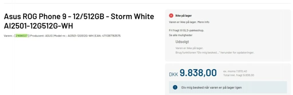 Az ASUS ROG Phone 9 sorozat hivatalos bemutatója 2024. november 19-én várható. Egy dániai online áruház, a ComputerSalg, előzetesen listázta a ROG Phone 9 Storm White változatát, 12 GB RAM-mal és 512 GB tárhellyel, 9 838 dán koronás áron, ami körülbelül 1 320 eurónak felel meg.