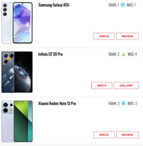 A Huawei Pura 70 Ultra az ötödik helyre szorult, megelőzve a Redmi Note 13-at és a lista második Infinix telefonját, a Note 40 Pro-t. A Samsung Galaxy A15 feljött a nyolcadik helyre, mivel az iPhone 15 Pro Max a kilencedik pozícióban tér vissza a chartra.