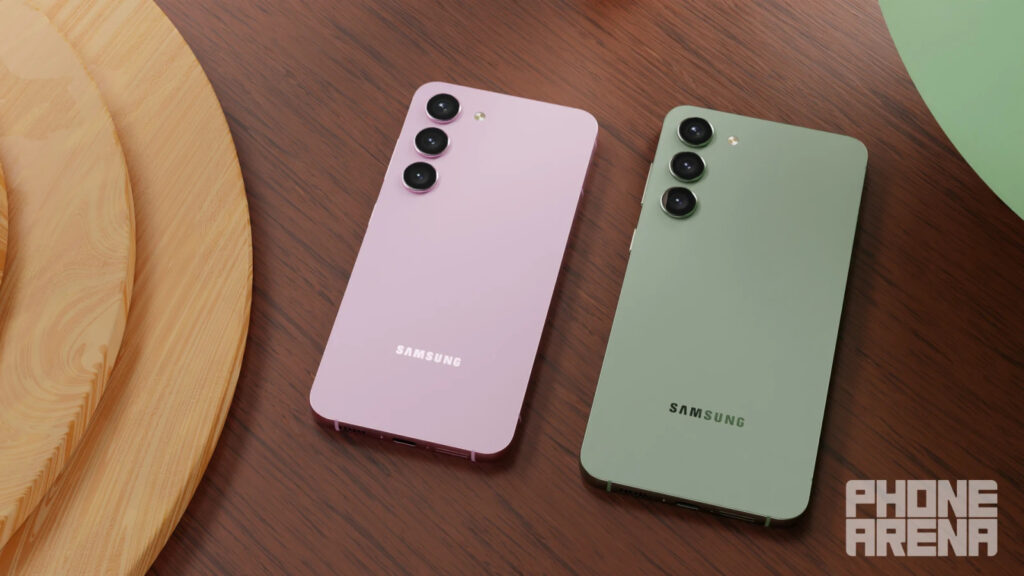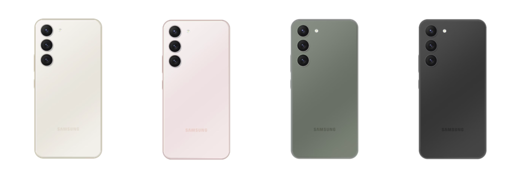 Az S23 és az S23+ hasonlóan fog kinézni – mindkettő hátulján három kamera található függőlegesen a bal sarokban, és egy LED vaku az első kamera jobb oldalán. A Samsung márkajelzés a hátlap alján, a bekapcsológomb és a hangerőszabályzó pedig a telefon jobb oldali keretén látható.