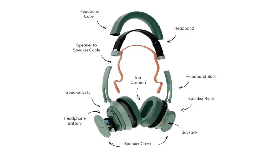 A vállalat azt mondja, hogy moduláris kialakítással könnyebben javíthatóvá teszi a fejhallgatót. Ez azt jelenti, hogy az olyan alkatrészek, mint a fülpárna, az akkumulátor és így tovább, cserélhetők. A Fairphone a termék fenntartható megközelítését is kiemelte, mondván, hogy újrahasznosított műanyagból és alumíniumból, valamint Fairtrade aranyból készült. A cég hozzáteszi, hogy az utazótáska újrahasznosított poliészterből és nejlonból készült.