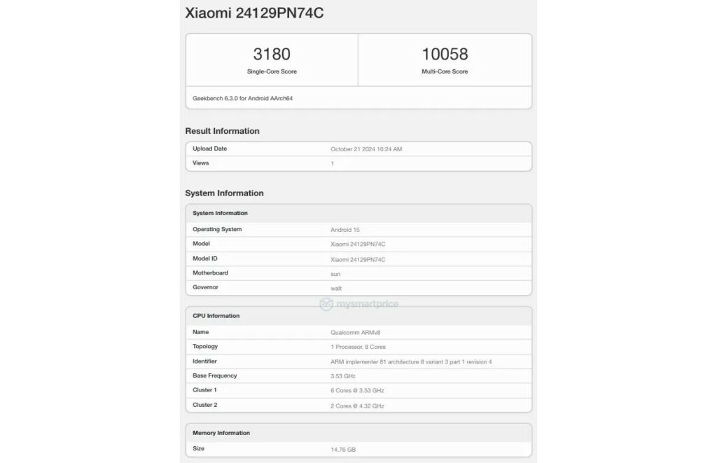 A Xiaomi 15 hivatalos bemutatójára várhatóan néhány napon belül sor kerül, miután a Qualcomm leleplezte a készüléket hajtó Snapdragon 8 Elite lapkakészletet. Ami azt illeti, az Elite kifejezetten jól illik a Xiaomi 15-höz, legalábbis a Geekbench teszt alapján, amelyet valószínűleg egy Xiaomi 15 prototípus futtatott.