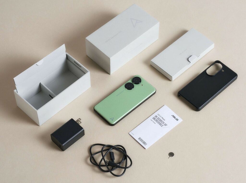 Az Asus Zenfone 10-et egy ragasztóanyag nélkül, újrahasznosított papír és szója tinta felhasználásával készült, környezettudatos dobozban szállítják. A csomagban a Zenfone 10, egy USB-C kábel, egy 30 W-os töltő és egy bumper tok található.