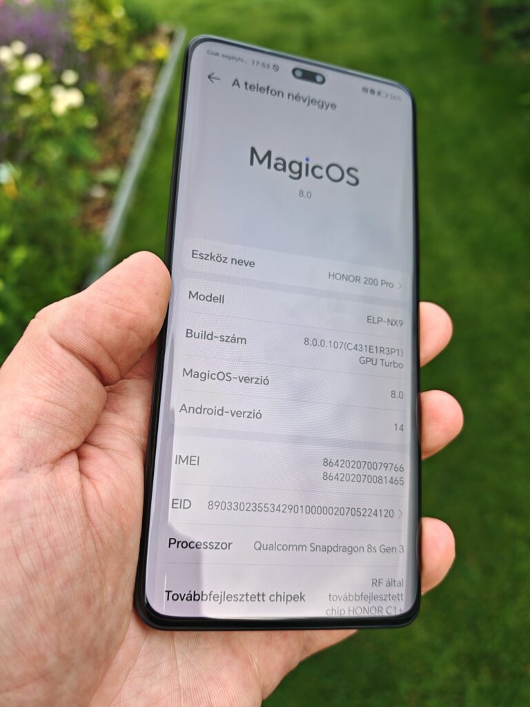 A teljesítményről a 4 nm-es Snapdragon 8s Gen 3 chipset és 12 GB RAM gondoskodik. Semmilyen extra késést, túlmelegedést vagy a rendszer lassúságát nem tapasztaltam. Minden úgy működött, ahogy kell, az alkalmazások gyorsan indultak, a rendszer mozgása gördülékeny volt. Az 512 GB tárhely mellett talán nem is fog zavarni, hogy a telefon nem támogatja a microSD kártyákat. Az Android 14 fölött a MagicOS 8.0 felhasználói felület fut, amely tele van különböző testreszabásokkal és hasznos funkciókkal. A gyártó négy nagy rendszerfrissítést és öt év biztonsági javítást ígér.