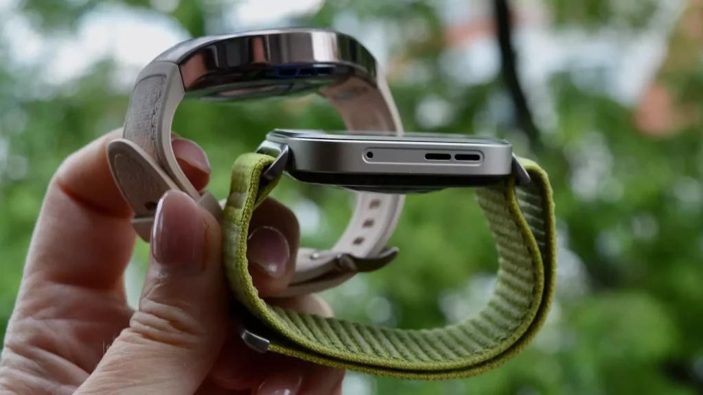 A tok vastagsága alig 9,3 mm, súlya pedig kevesebb mint 30 gramm – vagyis egyértelműen az egyik legkönnyebb prémium okosóra.