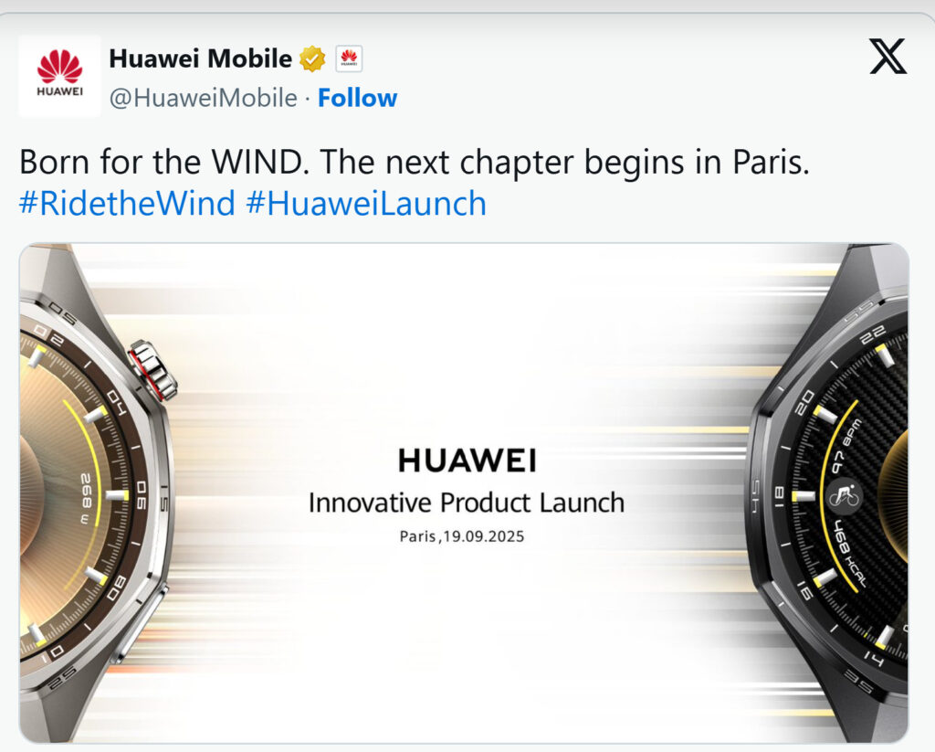 A Huawei hivatalosan megerősítette, hogy szeptember 19-én, Párizsban tartja következő nagy termékbemutatóját. A “Born for the WIND” – azaz “A szélnek született” szlogen egyértelműen utal arra, hogy az új okosórák elsősorban a sportos, outdoor életmódot preferáló felhasználókra fókuszálnak.