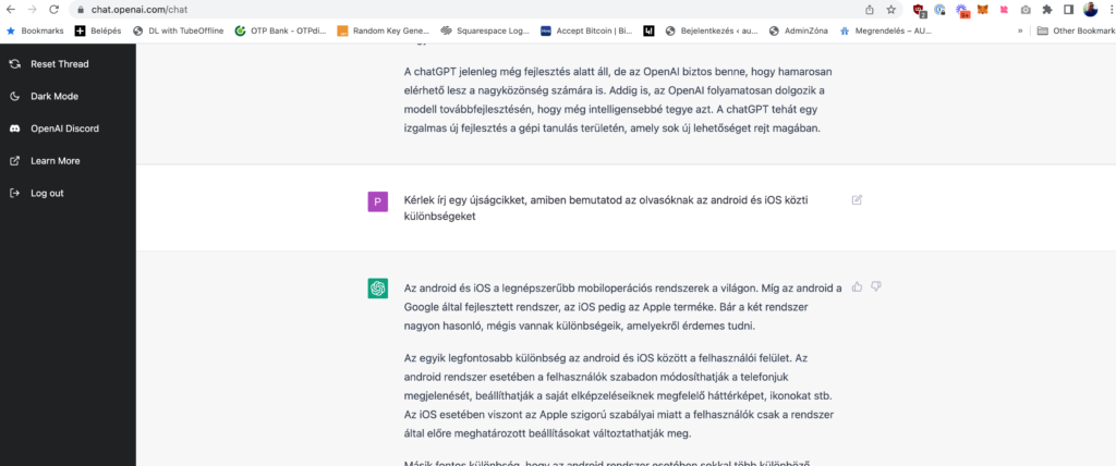 A chatGPT jelenleg még fejlesztés alatt áll, de az OpenAI biztos benne, hogy hamarosan elérhető lesz a nagyközönség számára is. Addig is, az OpenAI folyamatosan dolgozik a modell továbbfejlesztésén, hogy még intelligensebbé tegye azt. A chatGPT tehát egy izgalmas új fejlesztés a gépi tanulás területén, amely sok új lehetőséget rejt magában.