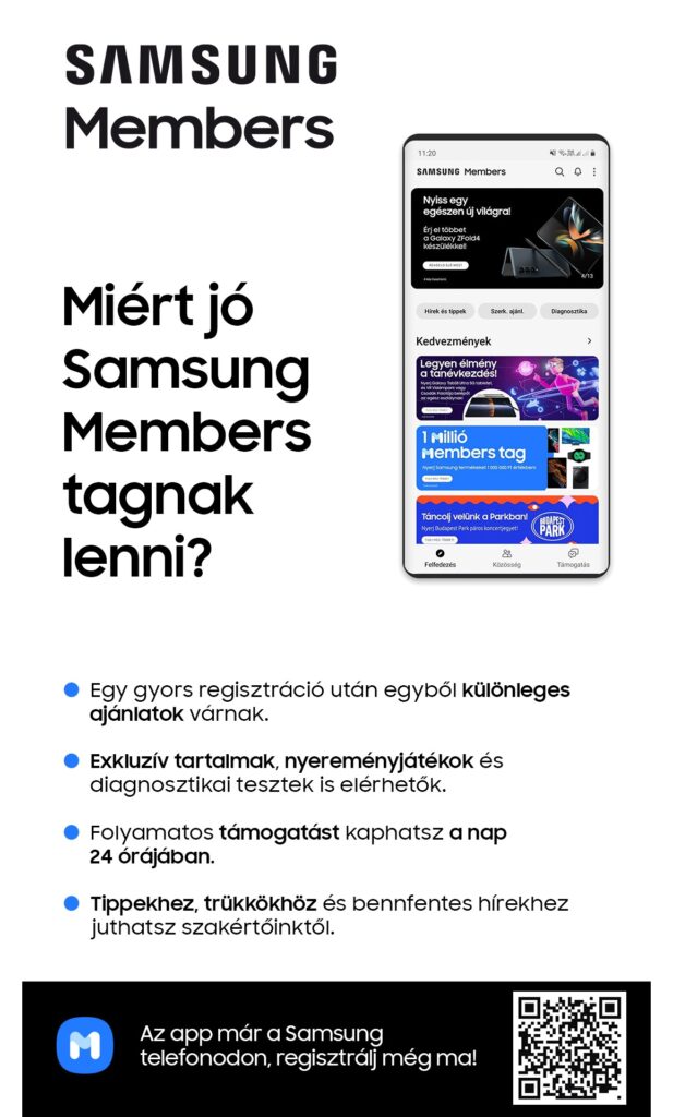 „A Samsung Members program exkluzív kedvezményeket, gyors támogatást, inspirációt és nyereményjátékokat kínál a regisztrált tagok számára, teljessé téve ezzel a felhasználói élményt” – mondta el Witsch Gerda, a Samsung Electronics Magyar Zrt. marketing igazgatója. „A személyre szabott ajánlatok mellett a program állandó inspirációt is nyújt a felhasználóknak, nem véletlen, hogy világszerte már több mint 16 millióan csatlakoztak ehhez a közösséghez. Nagy öröm számunkra, hogy 2022-ben a Magyarországi felhasználók száma is átlépte az egymilliót, hiszen így egyre többen vannak azok, akik még teljesebb, egyedi Samsung Galaxy-élményben részesülhetnek.”