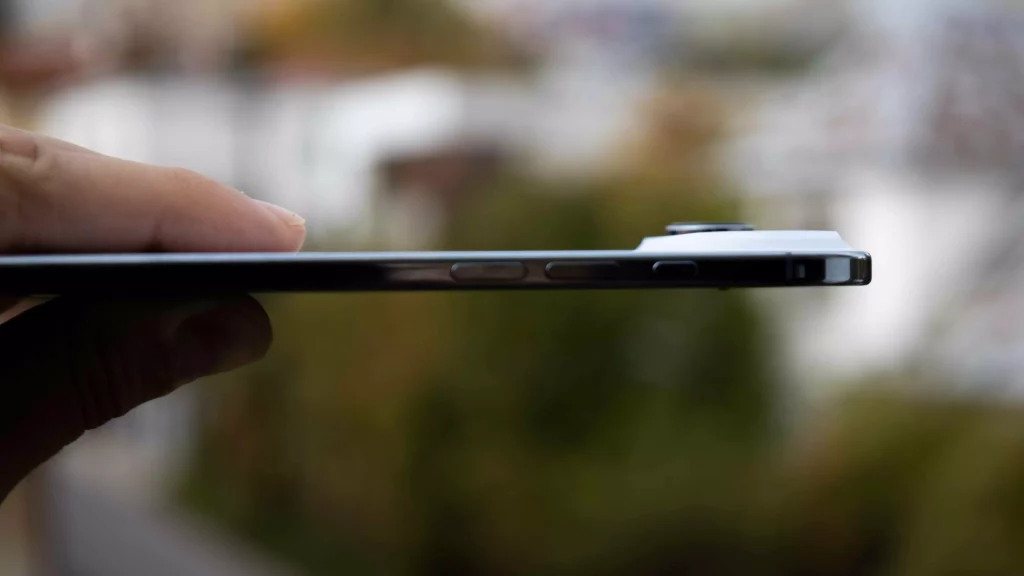 A konstrukció legnagyobb erénye a mindennapokban mutatkozik meg. A sík oldalkeretes forma biztos fogást ad, a matt hátlap nem gyűjti látványosan az ujjlenyomatot, a tömeg pedig olyan alacsony, hogy egyórás, egykezes használat után sem érzed a csuklóban. A gombok nyomáspontja határozott, a rezgőmotor precíz, a szerkezeti merevség pedig meggyőző: a karcsúság nem jár kongó, „dobozhangú” hatással. A keret anyaga esztétikus, de érzékenyebb a mikrosérülésekre, mint a robusztusabb, „pro” vonal – a „tok vagy nem tok” kérdés itt nem stílus, hanem praktikum. Tokkal az Air légiességéből keveset veszítesz, cserébe eltűnik az esztétikai kockázat.