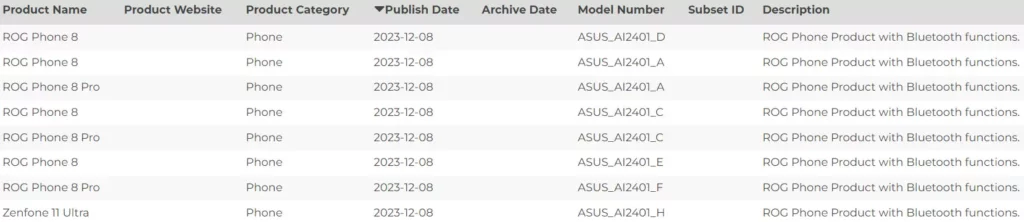 Az ASUS új okostelefonjainak Bluetooth SIG listája jelent meg az interneten, és a bejelentés két ROG Phone készüléket sorol fel. Ezek a ROG Phone 8 és a ROG Phone 8 Pro. Ugyanakkor láthatunk egy úgynevezett Zenfone 11 Ultra készülékre vonatkozó listát is.