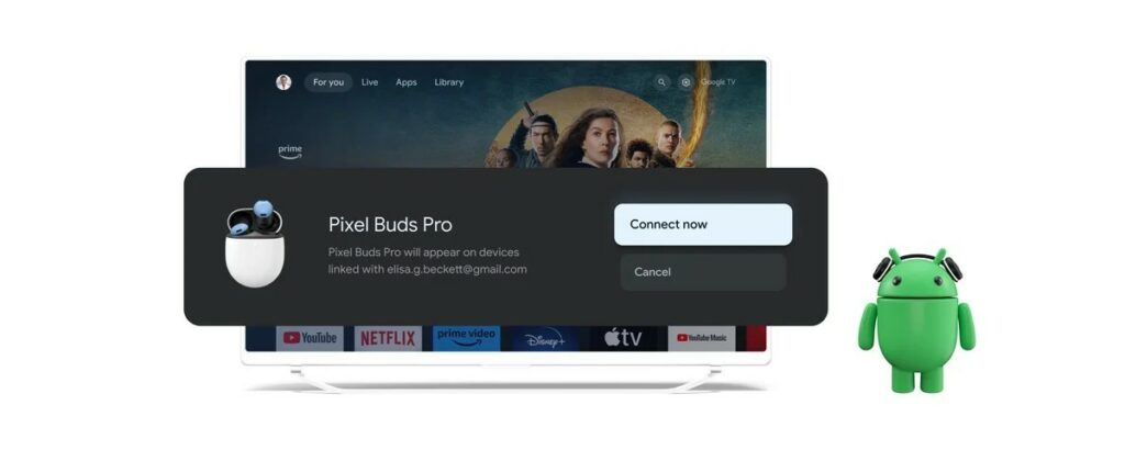 Továbblépve, a Fast Pair a következő hónapban a Google TV-vel ellátott Chromecastra is kiterjed, és még az év folyamán még több Google TV készüléket is elér. Miután a tartozékot párosítási módba helyezted, csak egy érintéssel csatlakoztathatod a kompatibilis fejhallgatót vagy hangszórót a Google TV-hez. A hangkimenet vezérlése is egyszerű lesz, így bármikor gyorsan visszaválthatod az alapértelmezett tévéhangra.