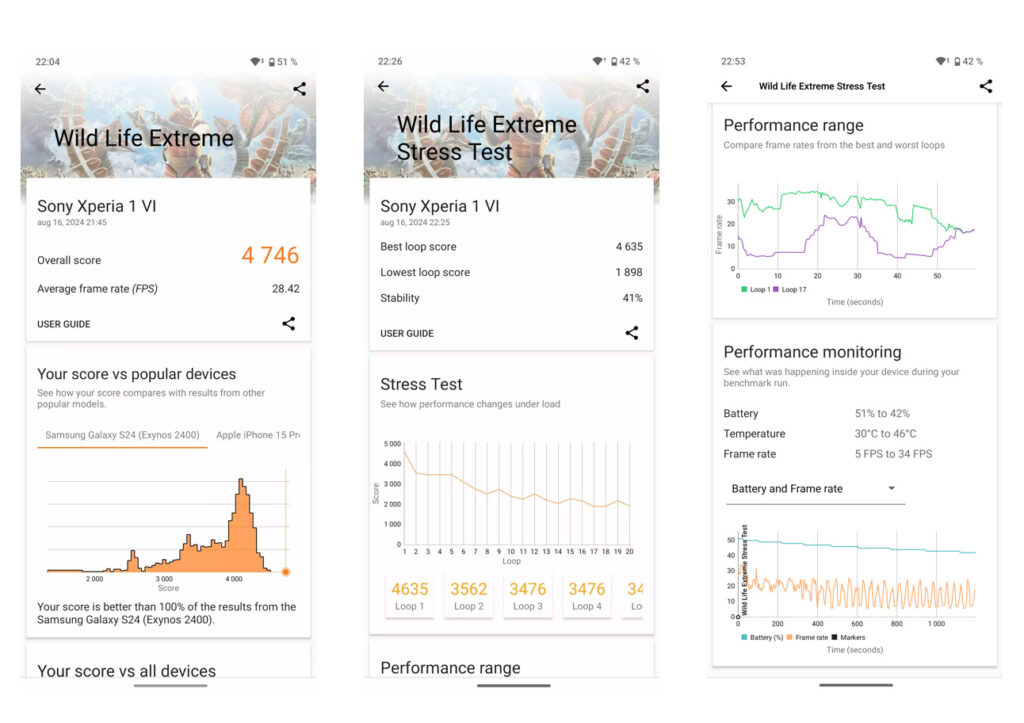 A Sony kiválóan optimalizálta a felhasználói felületet. Be kell vallanom, hogy a Sony Xperia 1 VI az egyik leggyorsabb okostelefon, amit idén teszteltem. Úgy érzem, hogy sebességben összehasonlítható a Pixel telefonokkal. Nem tudom, hogy ez csak a minimalista grafikus felület okozta benyomás, amely erősen emlékeztet a tiszta Androidra, vagy valóban ilyen jól van optimalizálva. Bármit is bíz rá az ember, a telefon egyszerűen teljesíti azt.