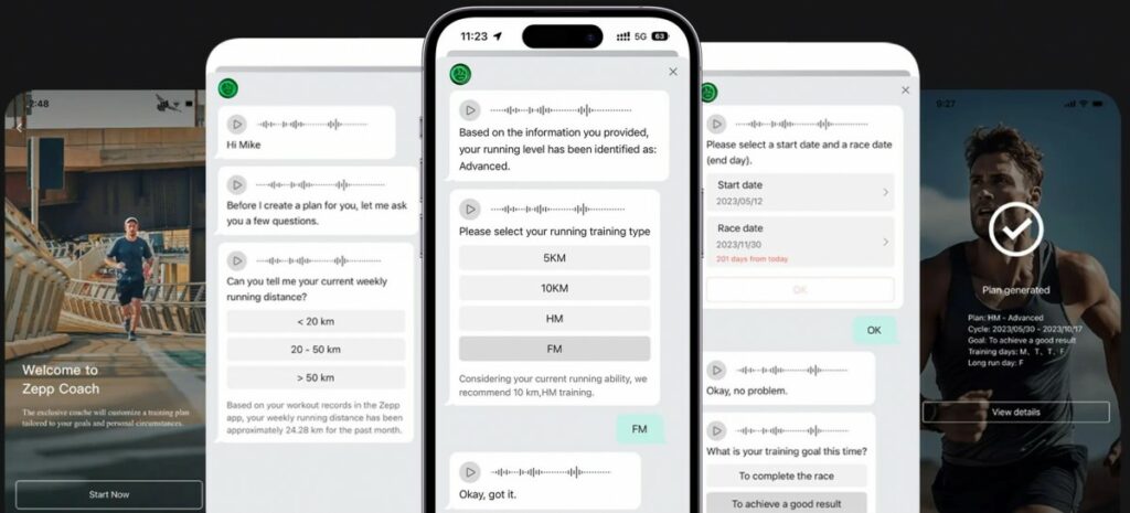 Egyes országokban a Zepp Coach egy AI Chat chatbotot is tartalmazni fog egy rövid bemutató erejéig, mielőtt előfizetéses szolgáltatássá válik. Generatív AI-t és alkalmazott nagy nyelvi modellt (LLM) használ a felhasználó természetes nyelvi leírásainak hangon vagy begépelt parancsokon keresztüli felismeréséhez, hogy könnyen érthető válaszokat adjon a sporttal kapcsolatos kérdéseikre. Az Amazfit szerint “ez olyan, mintha egy igazi emberi személyi edzővel egy személyes edzésen vennénk részt”.