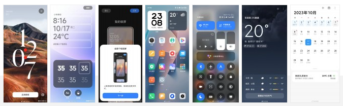 A Xiaomi sokkal több testreszabási lehetőséget kínál a zárolási képernyőhöz, új típusú sablonokkal, óra, betűtípus és widget opciókkal, valamint részletesebb háttérkép testreszabással. A vezérlőközpont a MIUI 14-hez képest áramvonalasabb megjelenéssel érkezik. Az alkalmazás ikonok hasonlóan néznek ki, mint a MIUI 14 esetében. Ne feledjük, hogy ezek nagyon korai HyperOS béta kiadásoknak tűnnek, és a Xiaomi megváltoztathatja a kinézetet a végleges verzió kiadásáig.