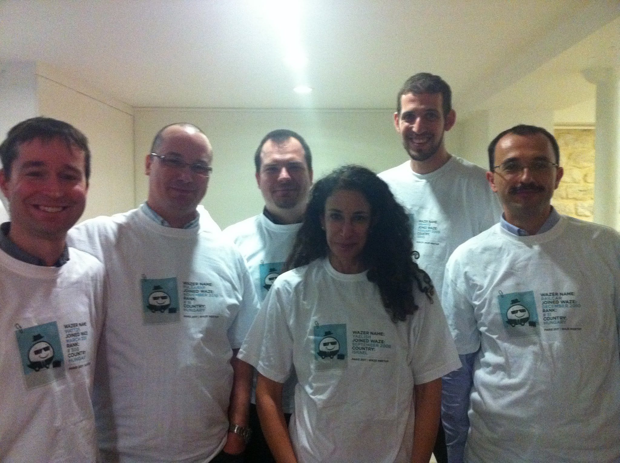 A képen balról jobbra: Watt25, PulsarXP, Wroadd, Yael(WazeHQ), Dror(WazeHQ), Railcar
