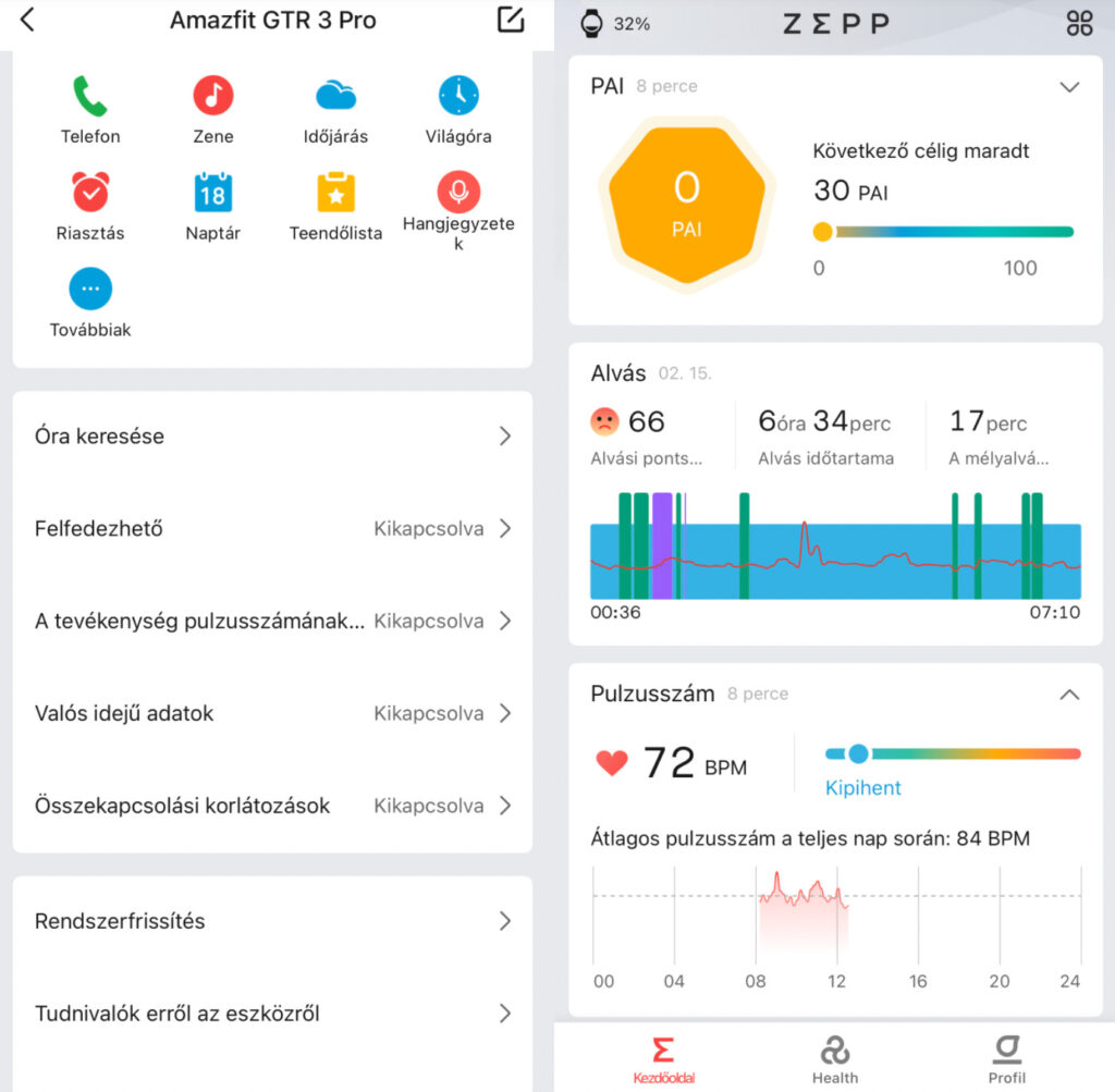A Zepp appon kívül pedig az órát is magyar nyelvre állíthatjuk, márpedig ez igencsak nagy fegyfertény, hiszen kevés okosóra tud magyarul a kategóriában. A funkciók között bóklászva pedig látszik, hogy lényegében minden le lett fordítva.