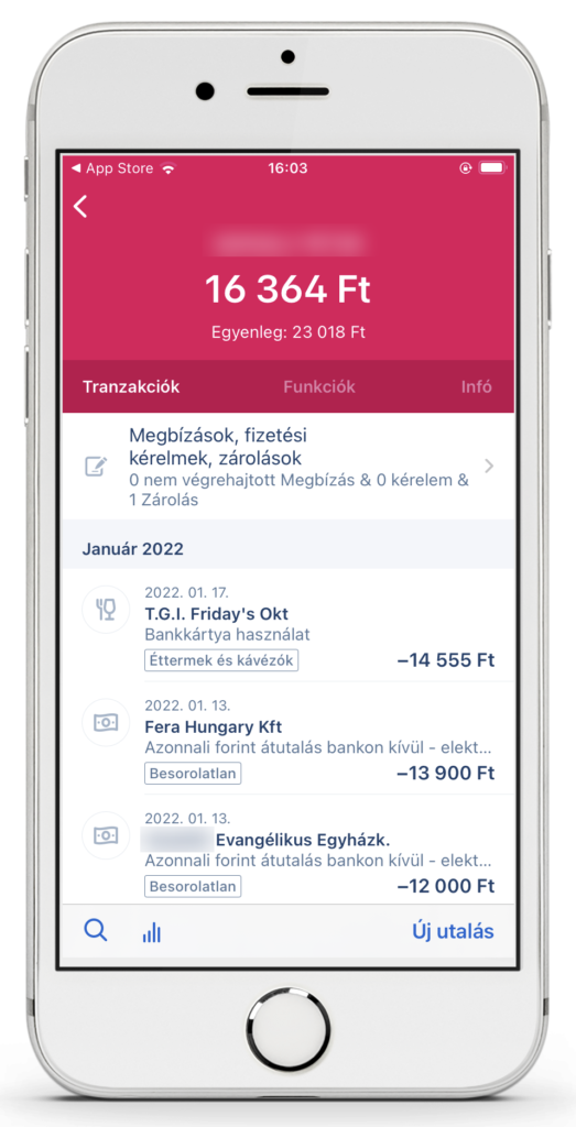 Ez a funkció a CIB, Erste és Raiffeisen bankok applikációiban, a számlatörténetben érhető el.