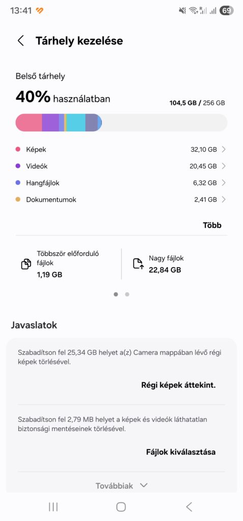 Képzeld el, hogy megnyitsz egy böngészőt tíz lappal, közben Spotifyról szól a zene, háttérben fut a navigáció, majd hirtelen üzenetet kapsz, és átváltasz a kamerára. Ha kevés a RAM, a rendszer elkezdi „kipakolni” a háttérben lévő appokat a munkapadról: a böngészőlapok újratöltődnek, a játék visszaáll egy korábbi pontra, a kamera késlekedik a megnyitással. A telefon ilyenkor trükkhöz nyúl: a tárhely egy szeletét ideiglenes RAM-pótlásként használja (virtuális memória). Ez működő kompromisszum, de lassabb – a tárhely bár gyors, nem olyan gyors, mint a valódi RAM. Ezért érezzük ilyenkor a mikroakadást, a „mindjárt” pillanatokat. A másik véglet, amikor a tárhely fogy el: hirtelen nem tud frissíteni a rendszer, nem ment fotót a kamera, a WhatsApp letöltései hibára futnak, és még az appok is belassulnak, mert nincs elég hely az ideiglenes fájloknak. A két komponens tehát másképp, de egyaránt kritikusan befolyásolja a mindennapi élményt.