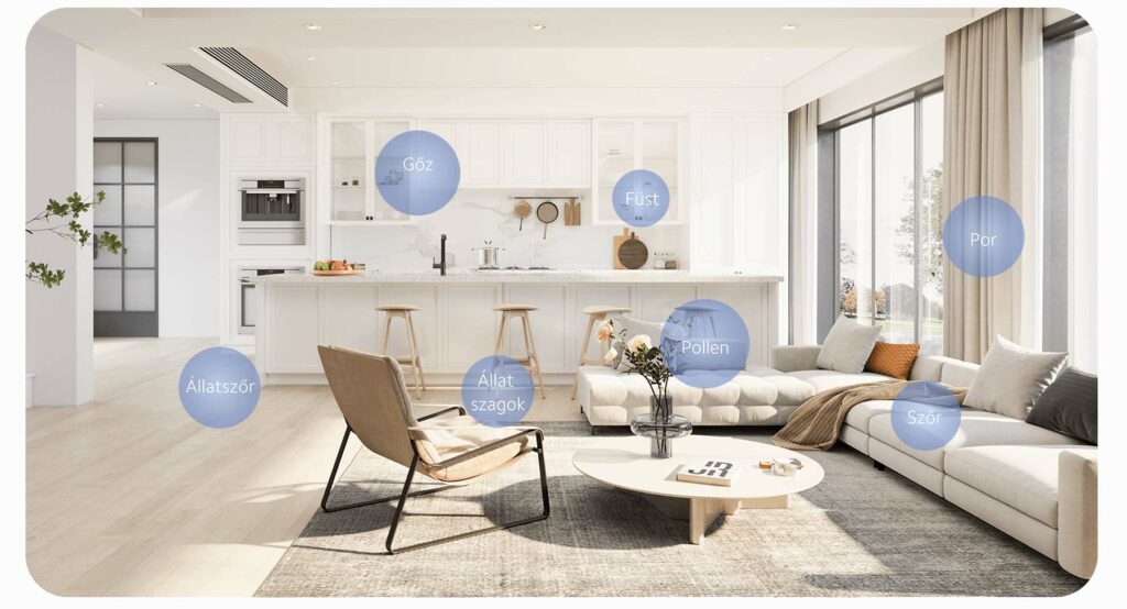 Az eszköz igazán elegáns dizájnnal rendelkezik, így egy modern otthonba is jól illeszkedik, de ami még ennél is fontosabb, hogy kiváló teljesítményt nyújt: egy nagy, 20 m2-es helyiséget körülbelül 10 perc alatt képes megtisztítani, de ennél nagyobb területet (40m2) is le tud fedni, így alkalmas a nappali elsődleges légtisztítójának.