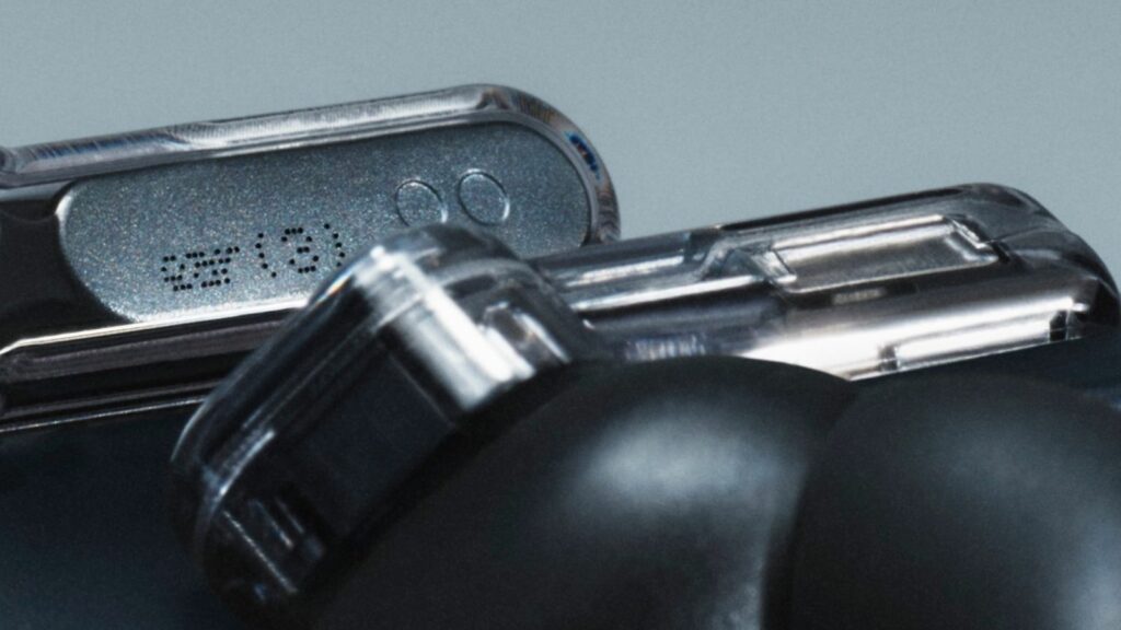 Az Ear-széria vizuális névjegye az átlátszó ház és a „pontmátrix” betűtípus a száron. A friss kedvcsinálók alapján a szár formája finoman módosult, a felület pedig kaphatott egy sekély bemarást – ez lehet új, kitapintható vezérlősáv (lejátszás/szünet, hangerő-csúsztatás). A fülillesztékek továbbra is szilikon alapúak, több méretben. Jó jel, hogy a Nothing nem dobja el a kényelmest az újdonság kedvéért: az Ear (3) inkább ergonómiát csiszol, mintsem radikálisan átrajzol.