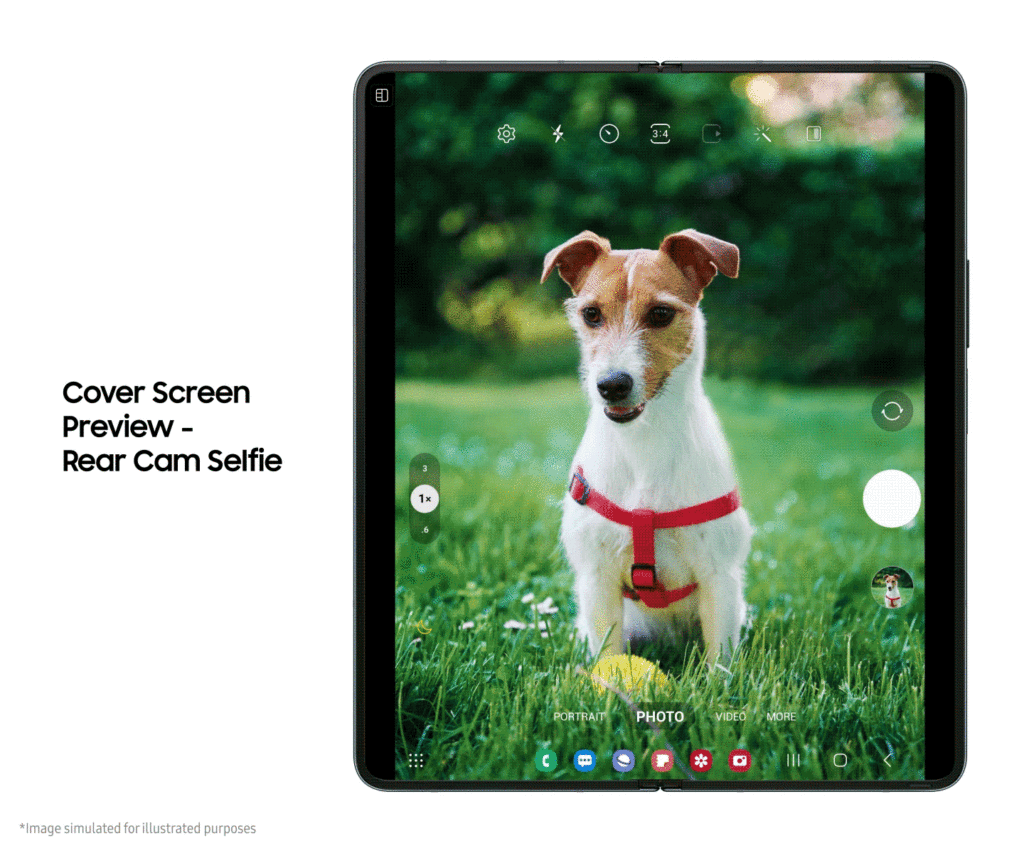 Kihasználva a rugalmas formatervezést, a Galaxy Z sorozat készülékei igazán sokoldalú fotózási élményt kínálnak. A kettős előnézet funkcióval a fő- és a fedlapi kijelzőn mind a fotós, mind pedig a fotóalany is láthatja a kép előnézetét, mielőtt az elkészül . Mivel a kamera teljes vezérlése közvetlenül a fedlapi kijelzőn történik, a Hátlapi kamerás szelfi mód segítségével a fő kamerával is nagy felbontású szelfiket készíthetünk.