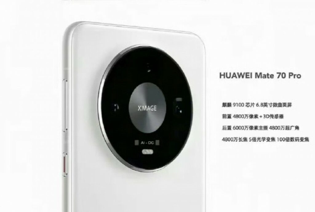 Talán nem meglepő, hogy a Mate 70 Pro az új Kirin 9100 lapkakészleten fog futni, de a fő kamera is változik. Az új Mate 70 Pro egy 60 MP-es fő egységet kap, a korábbi 50 MP helyett, míg a 12 MP-es ultraszéles látószögű kamera és a 48 MP-es, 5x periszkópos telefotó kamera papíron változatlan marad.