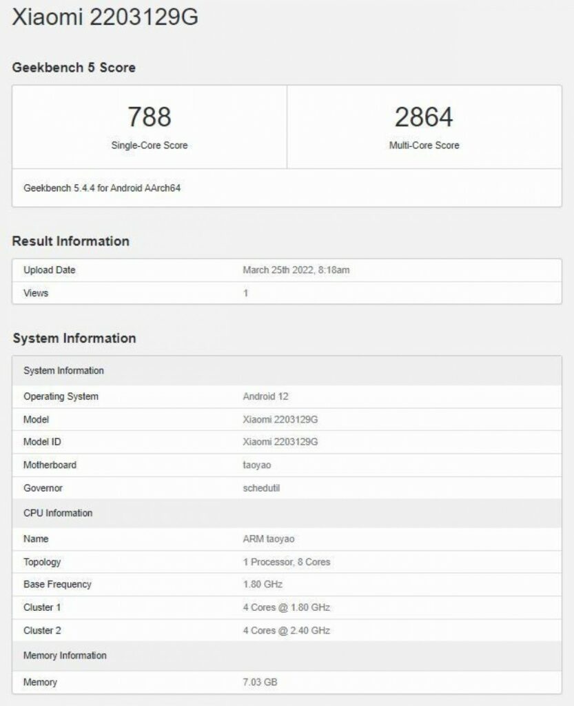 Legalábbis a Geekbench adatbázisa erről árulkodik, hiszen a 2203129G számmal jelzett készülék egyrészt Xiaomi, másrészt ilyen hardverrel teljesítette a tesztet. A leírás az Android 12-t és a MIUI 13-at is előrevetíti, szóval minden bizonnyal már nem kell sokat várni arra, hogy megérkezzen a negyedik tag is az egyre csak bővülő családba.