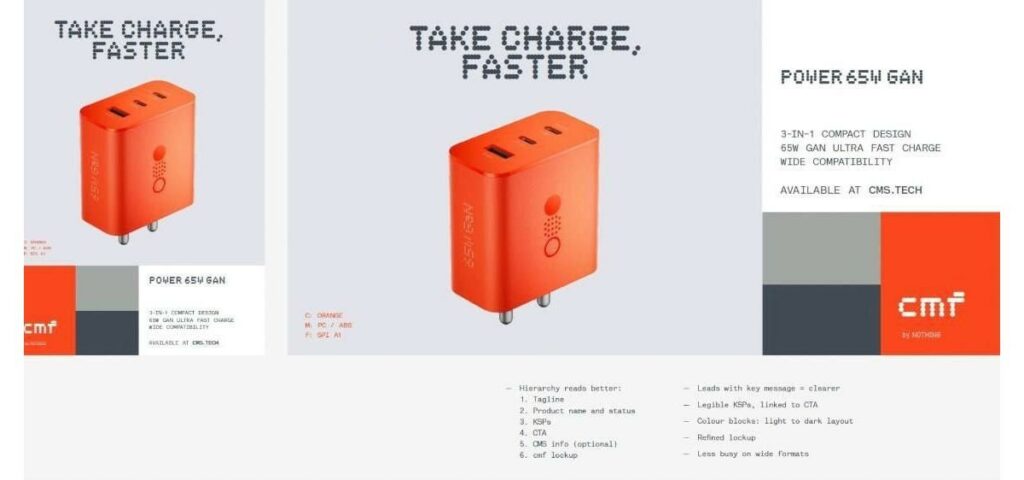 Ma egy kiszivárgott információ alapján képeket kapunk mind a fülhallgatóról, mind az okosóráról, valamint egy 65 W-os GaN töltőről. Állítólag ezek alkotják majd a CMF by Nothing első készüléktrióját, amely szeptember 26-án jelenik meg világszerte.