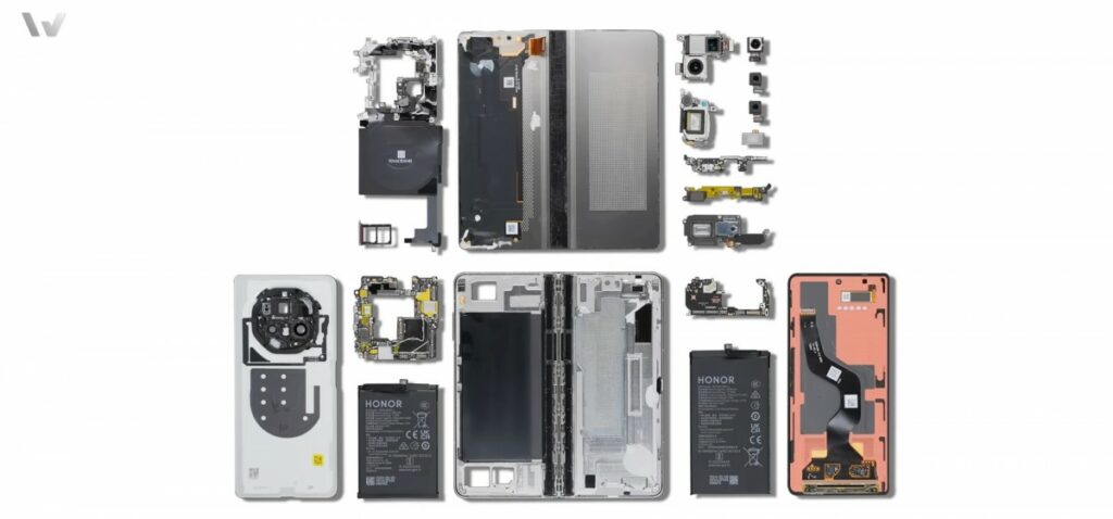 A Honor Magic V3 vastagsága 9,2-9,3 mm és súlya 226-230 g (színtől függően), így az egyik legvékonyabb és legkönnyebb horizontálisan hajlítható telefon a piacon. Mindezt anélkül, hogy az akkumulátor élettartamát feláldoznák (5100 mAh akkumulátorral rendelkezik) és a töltési lehetőségeket (66W vezetékes és 50W vezeték nélküli). Ha kíváncsi vagy, mi van belül, nézd meg a WekiHome szétszerelési videóját.
