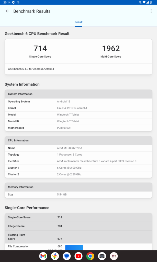 Hardver terén egy Mediatek Dimensity 700-as chipsettel van dolgunk, ez pedig128GB-os tárhellyel párosul. Ami jó hír, hogy a tárolos UFS 2.2 szabvánnyal rendelkezik, valamint memóriából 6GB-ot kapunk. Az OS alapvetően rendben fut, de azért nyilván vannak néha meg-meg akadások, kisebb gondolkodások, döccenések de alapvetően teljesen jól használható, ha reális elvárásokat támasztunk felé. A benchmark tesztek alapján is az látszik, hogy – az árából is látható módon – belépőszintet képvisel, de a teljesítményét végig tudja tartani a stressz teszt alatt is, és a készülék egyáltalán nem melegszik. A grafikai teljesítménye is elég belépő szintű, de azért el tud futtatni 3d-s játékokat, azonban a képkockasebesség terén lassulásokra is kell számítani, a játékélmény nem teljesen folytonos, de kompromisszumokkal élvezhető.