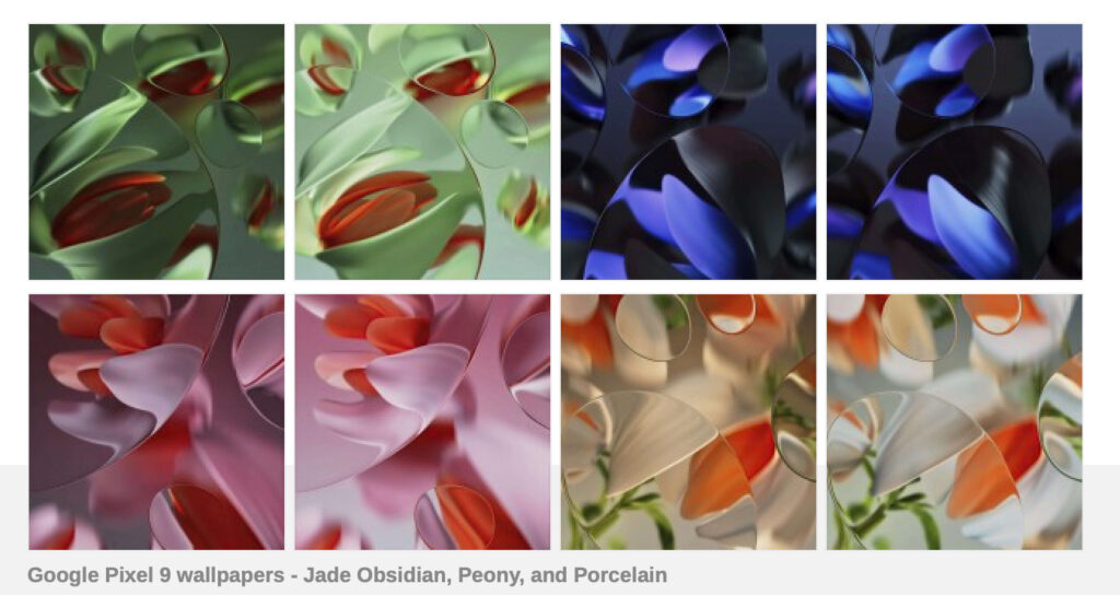 Egy múlt heti szivárgás már felfedte a Pixel 9 sorozat végleges designját, most pedig a színeik egy hivatalos készülék háttérképeiből derültek ki, amelyek egyenesen a Google egyik forrásától szivárogtak ki. A háttérképek a „Swirling petals” témát követik, amelyet úgy írnak le, mint „absztrakt virágok kavargó megjelenítése”.