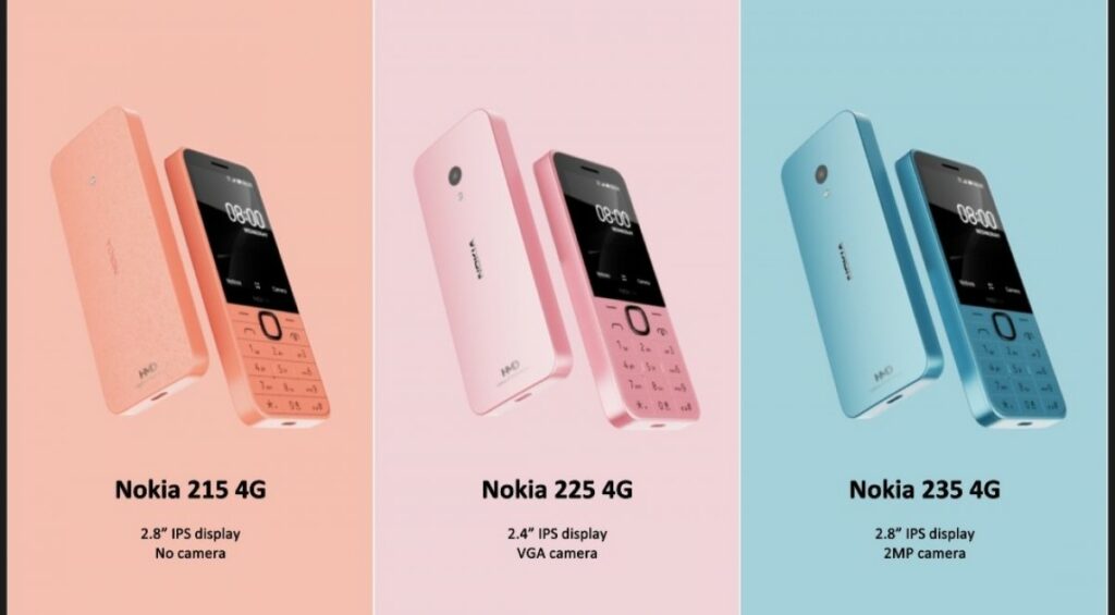 A HMD megosztott egy képet is, amelyen három olyan funkciótelefon látható: ezek a Nokia 215 4G, Nokia 225 4G és Nokia 235 4G. A középső nemrég szivárgott ki, de a másik kettő új. A „Nokia 215” nevet már kétszer használták korábban – egyszer 2015-ben, egyszer pedig 2020-ban. A „Nokia 235” név azonban vadonatúj.