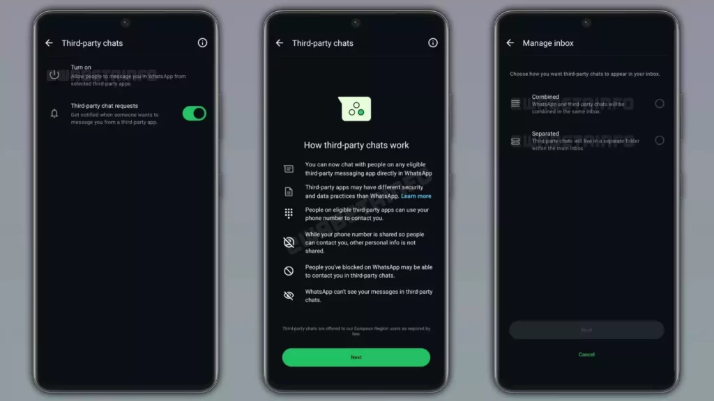 A történet háttere a digitális piacokat célzó uniós előírás: a legnagyobb platformoknak biztosítaniuk kell az alapvető üzenetküldési átjárhatóságot. A WhatsApp ezt úgy valósítja meg, hogy a beállítások között megjelenik egy új lehetőség, amellyel engedélyezheted a „harmadik felek csevegéseit”. Ha bekapcsolod, a kontaktod a saját, másik appjából írhat neked, és te is kezdeményezhetsz felé üzenetet úgy, hogy nem kényszeríted új alkalmazás letöltésére. A WhatsApp a külsős csatornákat eleinte külön helyen gyűjti, hogy ne keveredjenek a megszokott beszélgetésekkel; ez nem puszta dizájndöntés, hanem biztonsági és átláthatósági szempont: mindig tudd, épp natív WhatsAppon vagy egy átjárón át beszélsz.